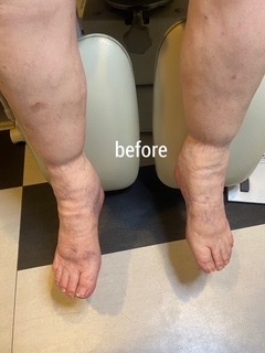 ケア後は、足が軽くなったとお喜びいただきました。ご高齢者の方で、同じように足が浮腫んでいる方は、足が重く感じ、歩くのも億劫になってしまう方が多くいらっしゃいます。