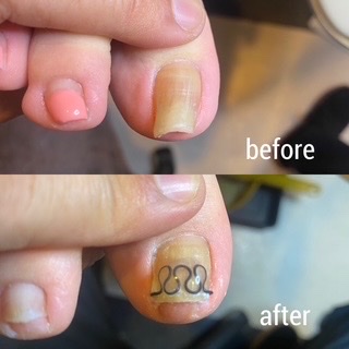 今回、ご家族の方にも強く勧められてお越し頂いた50代女性の「巻き爪矯正」をしました。