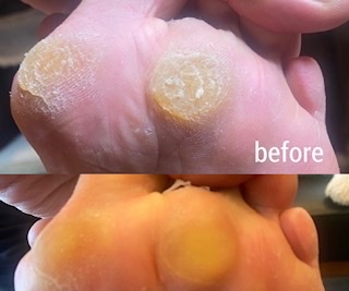 ご高齢者の方に限らず、足裏にできた痛みを伴うタコや魚の目ある場合