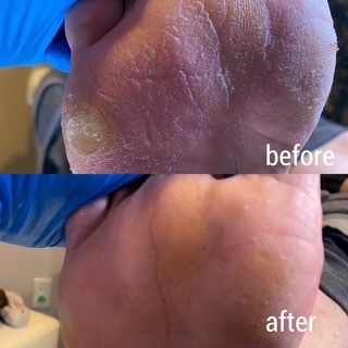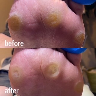 約3ヶ月ぶりにお越しいただきまいた男性顧客様の足裏にできた角質をケアしました。今回はいつもより期間が空いた為足裏に痛みもあったそうです。