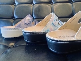 店頭にはFinnComfort (ドイツ靴)とLOMER (イタリア靴)の2025春夏シューズ・サンダルが並んでおります。今回ご紹介するのは、FinnComfortの2501『PISA』の新色になります。