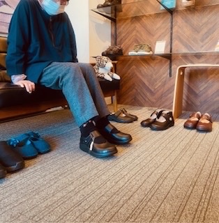 遠方からわざわざお越しいただきましたK様。以前からお仕事履きをはじめ「靴」でずっとお悩みがあるとの事でした。年々足の痛みを感じる様になり、その都度他の靴を何足も取り替えてはまた足が疲れ痛みが出るの繰り返しだったそうです。