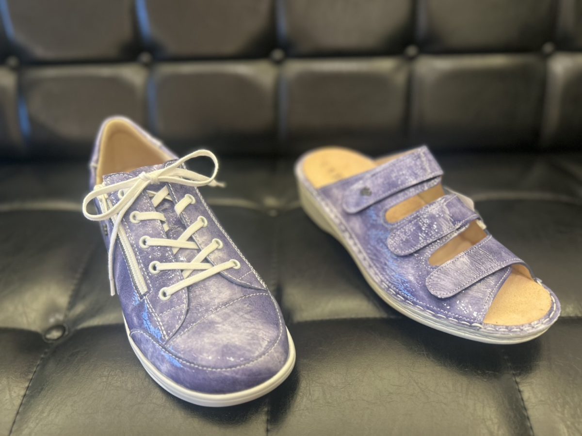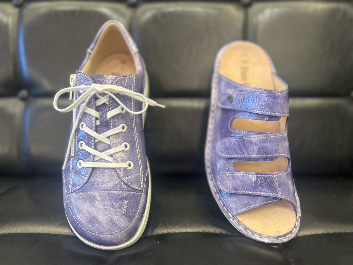 今シーズンのお薦めカラーのブルーエナメル。スニーカーにサンダルとお手に取る方が増えています。