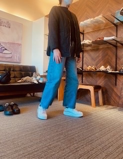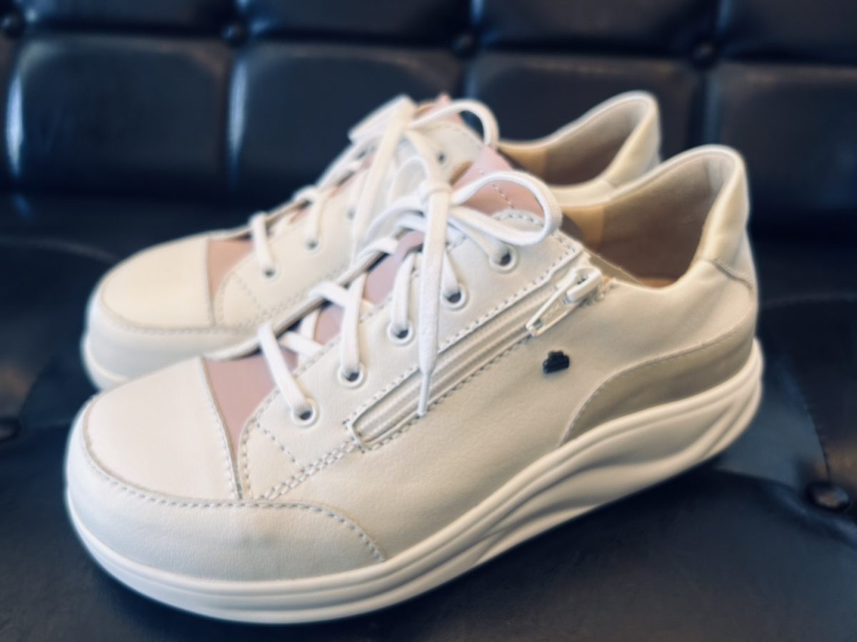 今季のフィンナミックシリーズ『HACHIOUJI』の新色カラーをお試しいただきました顧客様。甲のピンクや踵のシルバーが春らしく軽やかな一足となります。限定色となるため気になる方はお早めにご相談ください。