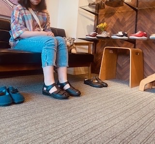 お仕事履きにもプライベートでもお履きいただけるお靴をお選びいただきました顧客様。3本のマジックベルトで足をしっかり固定し、通気性も良くこれからの季節から秋口まで活躍するサンダルとなります。Yさん、いつも有難うございます。