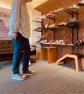 新規のお客様がお選び頂いたのは、フィンナミックシリーズから人気の『HACHIOUJI』のダークベージュパール/ラテ。土踏まずにピタっとくる履き心地も良く、ベージュパールと白の配色も気に入っていただきました。
