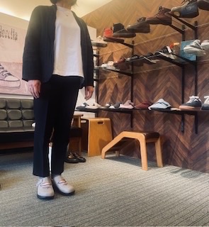 以前、お仕事履き用でFinnComfortをお試し頂いてから1日の足の疲れが今までとは違い嘘のように楽になったとお喜び頂き、今回はプライベートで長時間でも足が疲れない履ける靴を見にいらした顧客様。フィンナミックシリーズから、マジックベルト付きで着脱もしやすい『NAGASAKI』をお選びいただきました。色目は今シーズン人気の『トープ』年間通してもお洋服を選ばずお履きいただけます。
