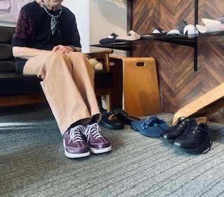 以前、ウォーキングシューズ『ワリン』をお買い上げいただきました顧客様。靴を変えてから足の痛みもなくなりとても調子が良かったとのことで、今回は普段履きにも使える靴を探しにお越しいただきました。