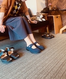 室内履き用として、FinnComfortの限定色のサボサンダルをお選びいただきました顧客様。