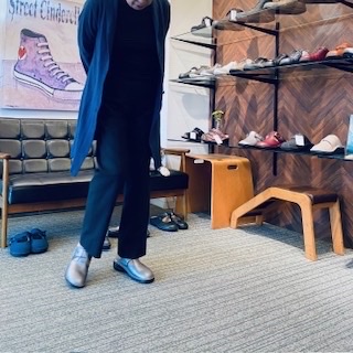 お仕事履きを新調していただきました顧客様。マジックベルトでしっかり甲を押さえていただくと、よりフィット感が増し歩きやすくなります。
