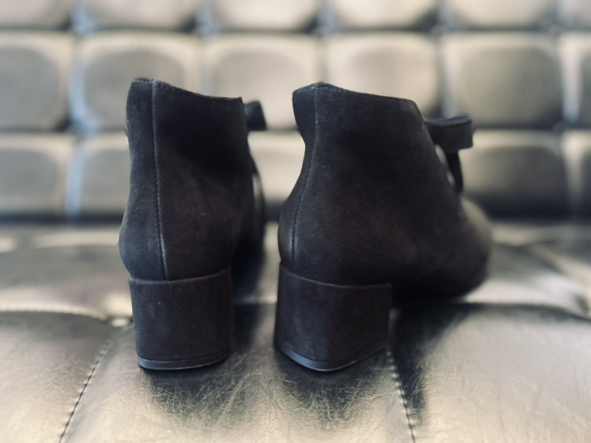 長野県から、定期的にフットケアにもお越しいただいている顧客様。「スニーカーはもちろん足が疲れなくて履きやすいけど、たまにはヒール靴も履きたいわ(^^)」ということで、今回『Semler』のヒールブーツをお試しいただきました。